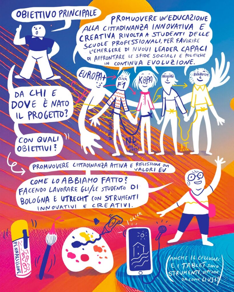 Insegnare agli studenti degli istituti professionali, autonomia e libertà creativa per esprimere le proprie prospettive sulla cittadinanza attraverso mezzi artistici.